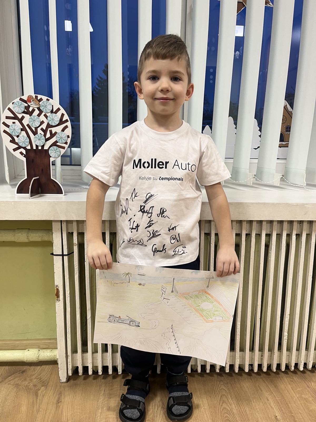 Konkurso dalyviai turėjo galimybę laimėti išskirtinius prizus – Lietuvos futbolo rinktinės žaidėjų pasirašytus marškinėlius. Ypač džiugu, kad vienas iš prizų atiteko mūsų ugdytiniui! Iš net 160 konkursui pateiktų darbų buvo atrinkti 32 geriausi piešiniai, tarp kurių – Beno ir jo šeimos kūrybinis darbas.